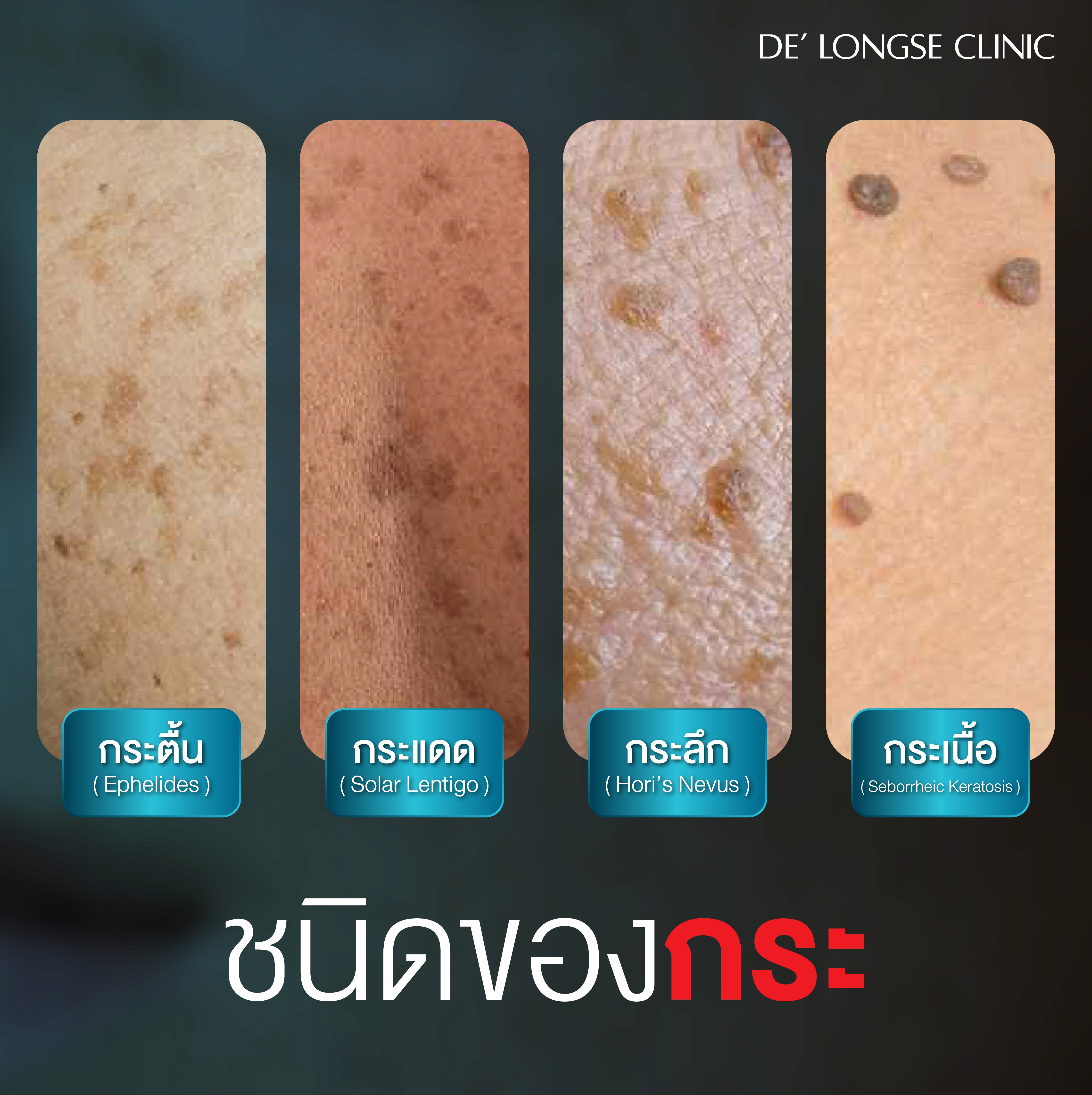 ชนิดของ "กระ" เป็นหัวใจสำคัญในการวางแผนการรักษาและการทำคอนเทนต์เพื่อให้ความรู้แก่คนไข้ครับ เพราะกระแต่ละชนิดอยู่ลึกไม่เท่ากัน และใช้เครื่องมือในการรักษาต่างกัน โดยหลักๆ สามารถแบ่งออกได้เป็น 4 ประเภทดังนี้